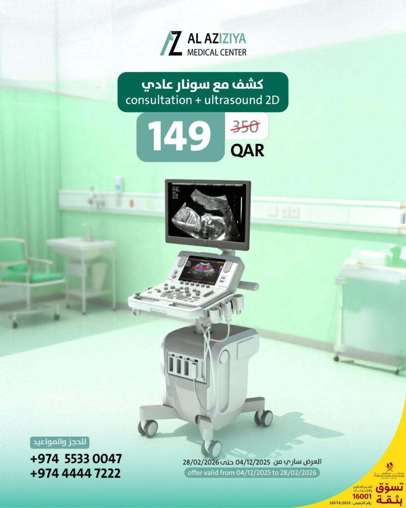 قوى العروض الطبية في قطر متاحة الآن حصريًا في مركز العزيزية الطبي لتقديم أفضل رعاية صحية بأسعار تنافسية. نقدم لكم خصومات هائلة على خدمات الأسنان مثل تبييض الأسنان بالزوم، حشو الأسنان للأطفال والكبار، وعلاجات العصب. بالإضافة إلى ذلك، استمتعوا بعروض مذهلة على خدمات الليزر مثل إزالة الشعر الكامل مع رتوش، تحديد اللحية للرجال، وعروض البكيني والإبطين. تشمل العروض أيضًا كشف 4D للحوامل وخدمات التجميل مثل حقن البلازما وتجديد البشرة. اغتنموا الفرصة الآن واحجزوا موعدكم للاستفادة من العروض الطبية المميزة في قطر قبل انتهاء الخصومات. خدماتنا متوفرة يوميًا مع أفضل الأطباء وباستخدام أحدث التقنيات الطبية الحديثة والمتطورة لضمان نتائج رائعة ومضمونة دائمًا، ونحرص باستمرار على تلبية احتياجات جميع أفراد العائلة الكريمة